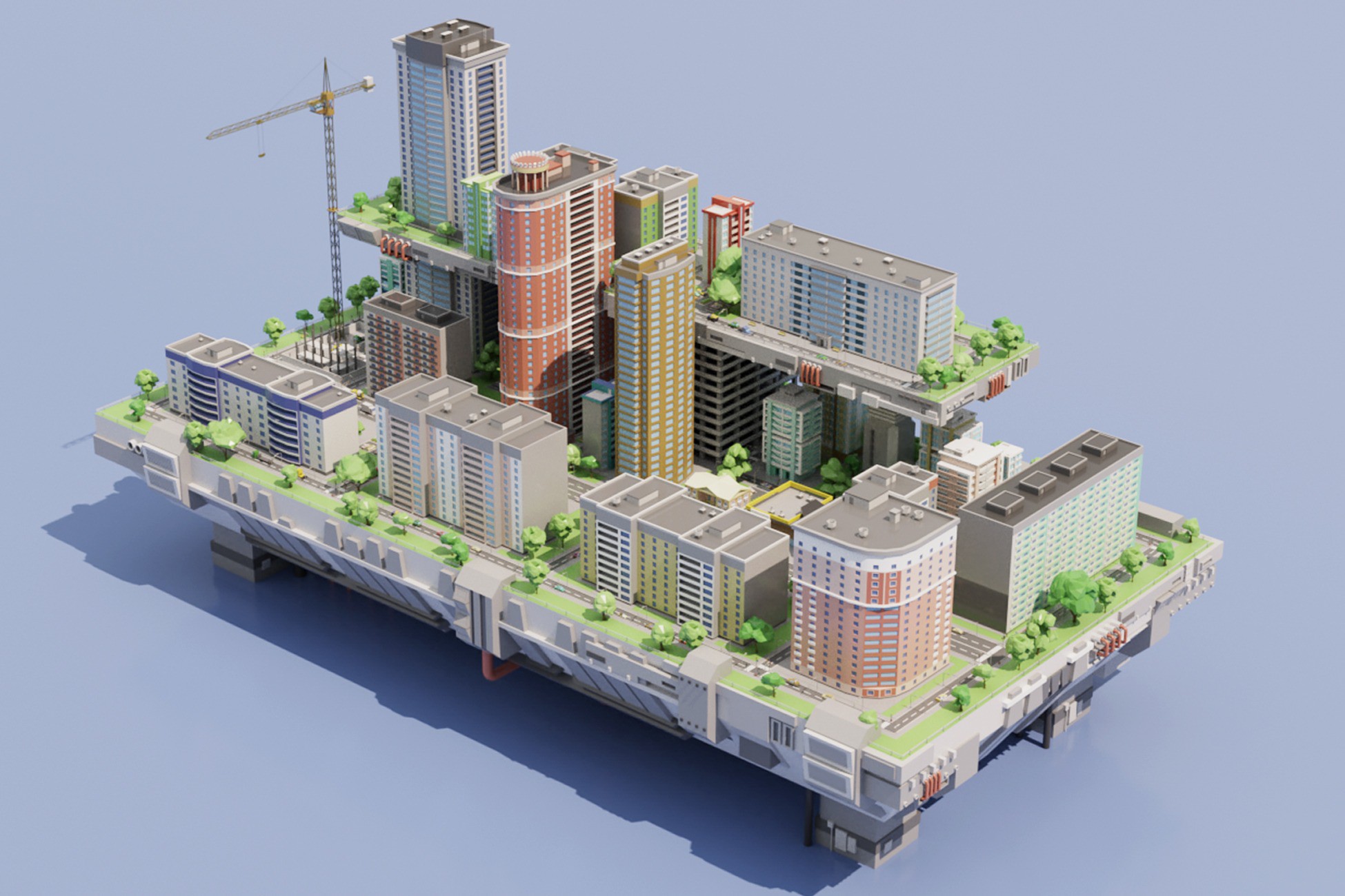 City 3d low poly 18 platform on the water