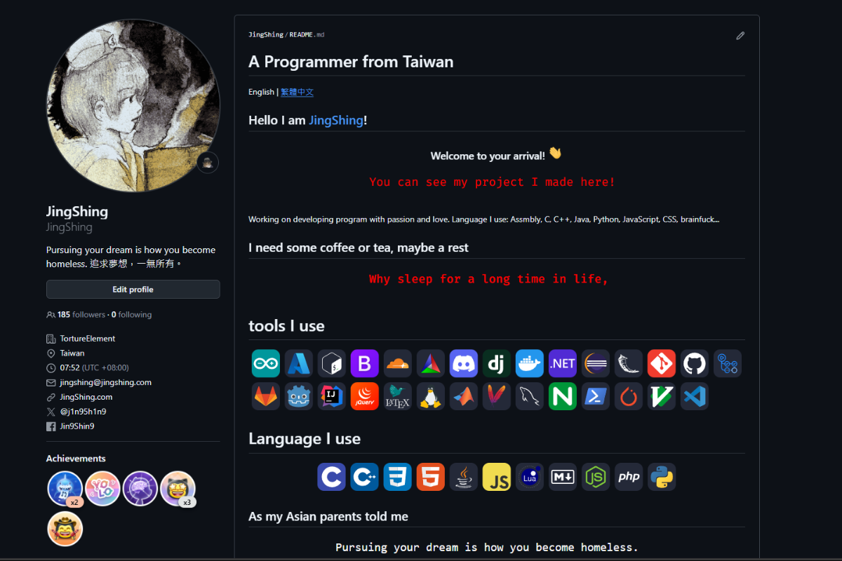 JingShing is a Taiwanese programmer who develops games with tools like Pygame, Godot, OpenGL, Love2D, and PyTorch. JingShing shares passion for game development and programming, offering tools like pixel art filters and various coding utilities.