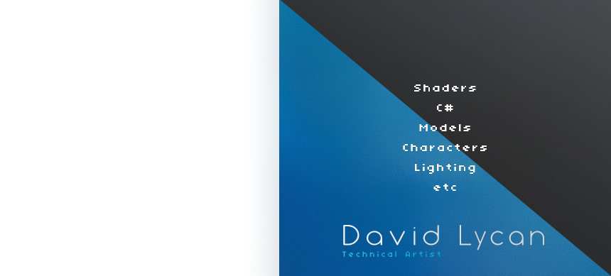 Hi my name is David Lycan and I have over 10 years game development experience as a Technical Artist working for companies such as HB Studios and Frontier Developments. Some of my skills include Unity Shader and C# Programming, 3D Modeling and Texturing, Character Skinning/Rigging, and Environment Lighting.