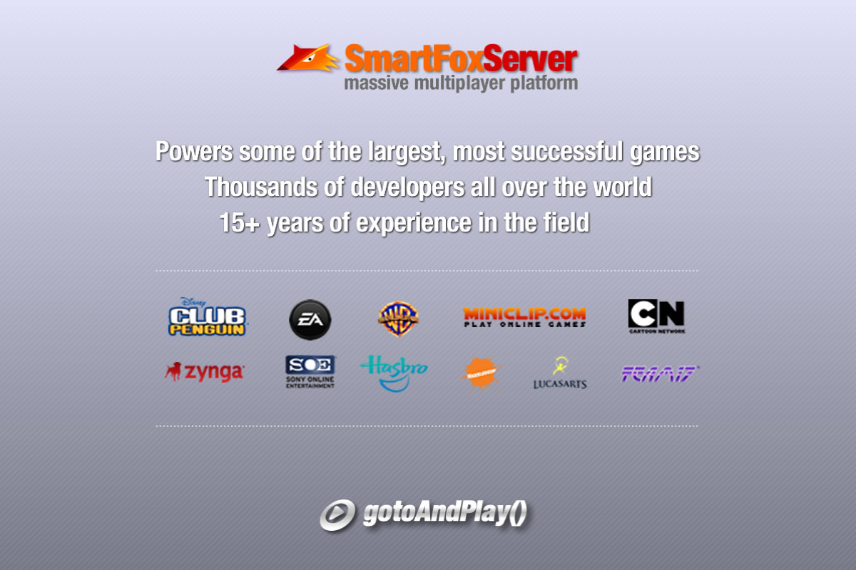 Since 2004, SmartFoxServer is the leading middleware for creating large scale multiplayer games, MMOs and virtual communities.